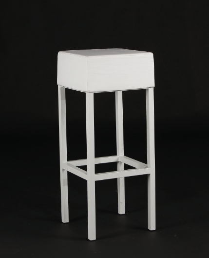 Sgabello bianco in ferro laccato con seduta in ecopelle
